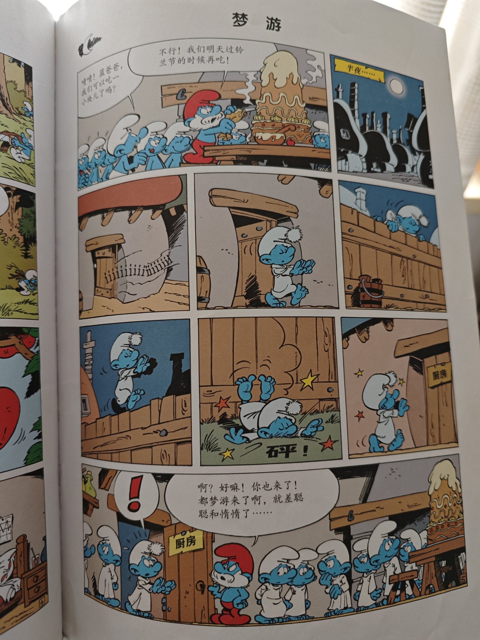 这次回济,一个重要的日常工作是帮着媳妇从菜鸟驿站搬快递。一个人抱不过来,就爷俩一起搬。路上说起我刚翻看的《蓝精灵》,其中一个故事梦游,儿子居然还记得细节,只有惰惰和聪聪没有装梦游偷吃蛋糕。这套书是他刚上小学的时候,他小姑姑从亚运村新华书店买的,然后给他讲了一个暑假。打小脑子里装了这么多与学习无关的东西,应该不是什么好事。不过,对儿子童年而言,还是幸福的。